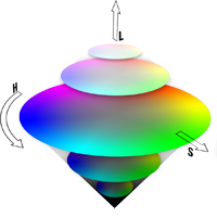 - "H" is hue, "L" and "V" are brightness (similarly called luminance or value) and "S" is saturation.