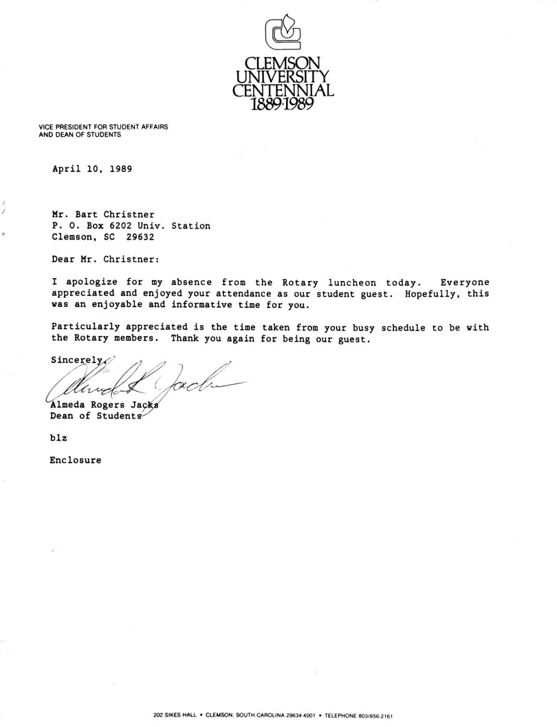 1989 04 10 APPRECIATE "Almeda Rogers Jacks" LETTER