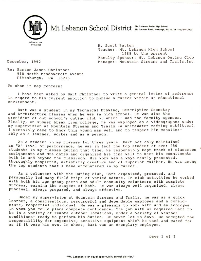 1992 12 01 REFERENCE "Scott Patton" LETTER