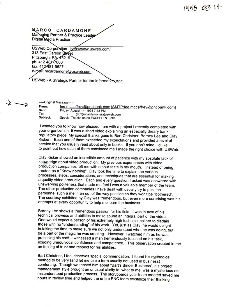 1998 08 14 RECOGNIZE "Lee McCaffrey" LETTER