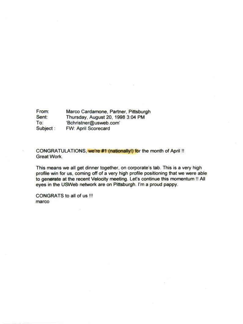 - All eyes in the USWeb network are on Pittsburgh. I’m a proud pappy.