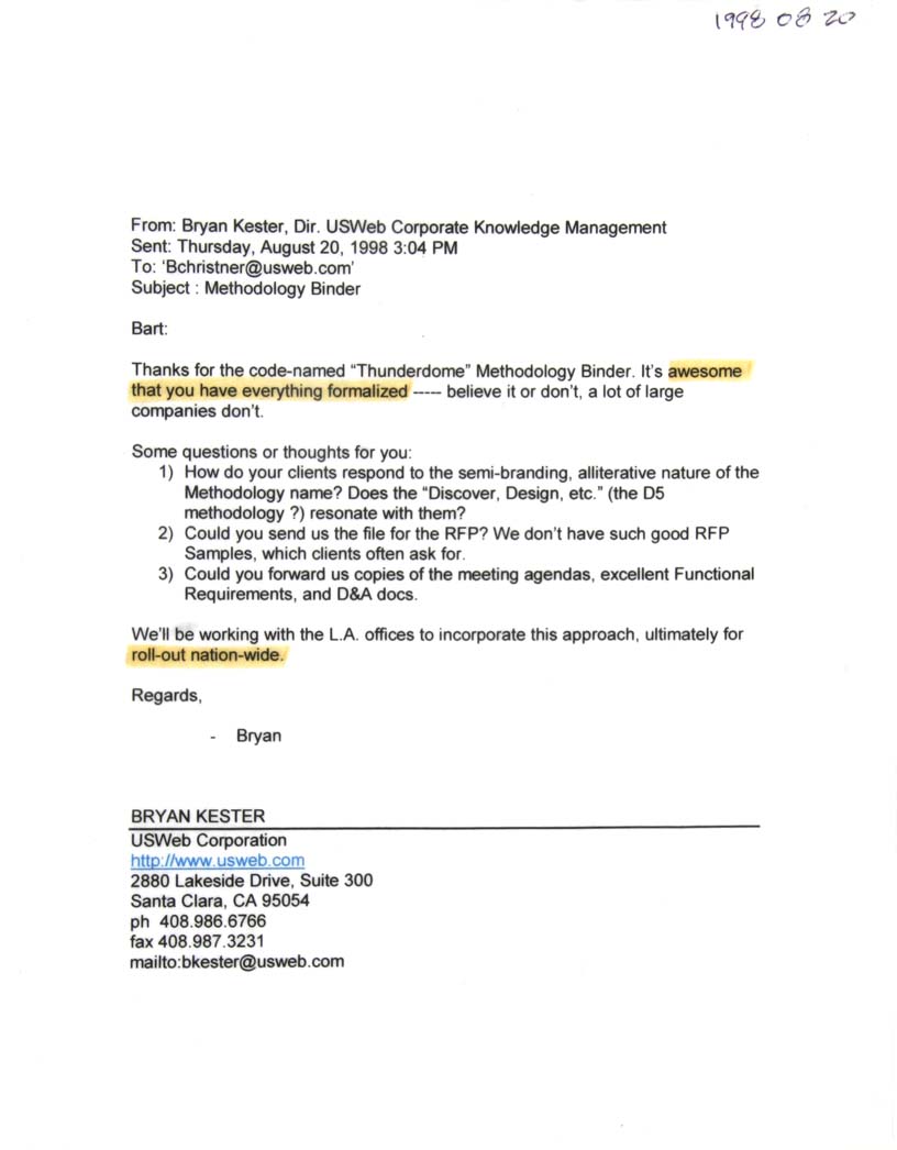 - From: Bryan Kester, Dir. USWeb Corporate Knowledge Management